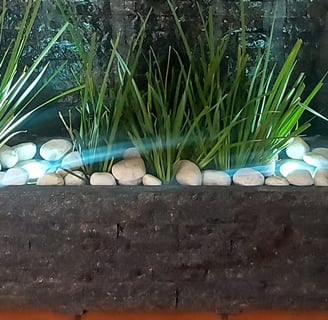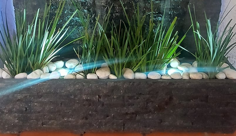 CASCADAS EN MURO, JARDINERAS, MUROS DE CUARZO.